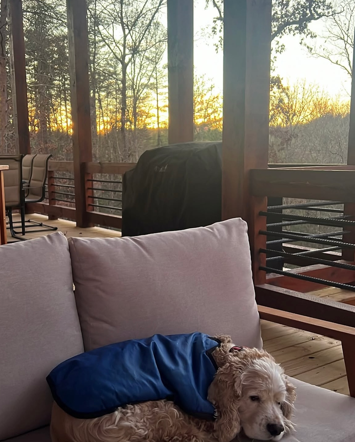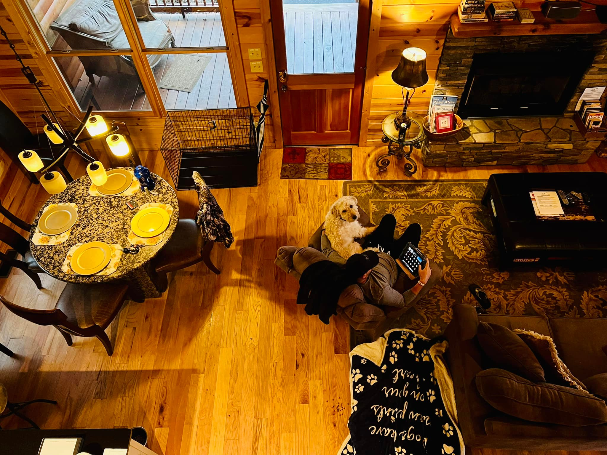 At dog-friendly retreat, Oscar & Friends Retreat, you’ll find a place where cozy comfort meets breathtaking views. The home is named after Oscar, the owners' beloved rescued Cocker Spaniel, who they consider not just a dog but a cherished family member. As lifelong fans of the breed, they treasure every second of time they can spend with him, which makes this cabin extra special to the owners and fellow dog lovers alike.