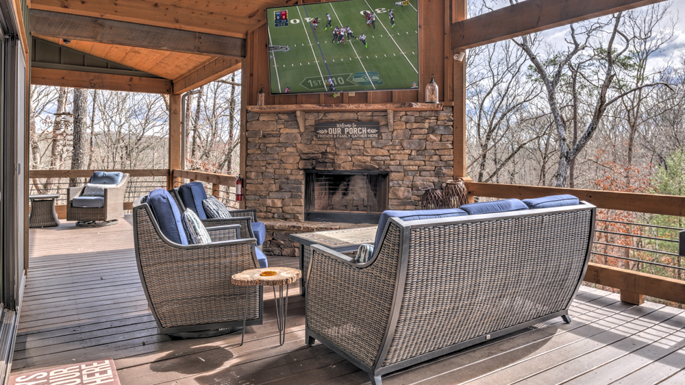 Enjoy this cabin built for outdoor adventure! Eagles on the Ridge features an expansive deck with ample seating for up to 10 guests, an outdoor breakfast bar, fireplace, grill, and flat screen TV perfect for entertaining. There's also a peaceful porch swing and a relaxing hot tub perfect for winding down after a day of exploring Blue Ridge. Indoors, enjoy the game room, wet bar, bunk beds, and even an elevator that keeps the whole cabin accessible for all of your friends and family!