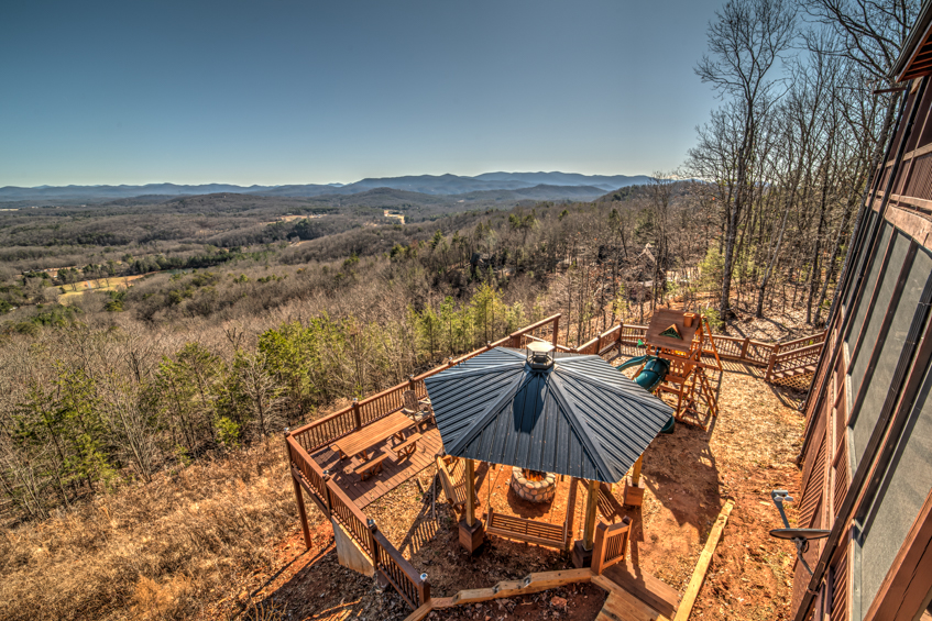 At an impressive elevation of 2,200 feet, this extraordinary home offers unmatched views in every direction. From its lofty perch, you can take in panoramic vistas of 172 mountain peaks, with visibility reaching up to 200 miles. Enjoy sweeping scenes that stretch across three states—Georgia, North Carolina, and Tennessee—along with stunning 180-degree views of Lake Blue Ridge.