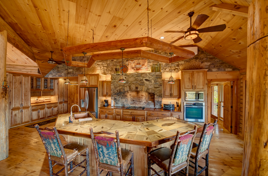 Saddle up for all the fun that this stunning cabin has to offer! Cherokee Vista is a charming log cabin, with western themed decor throughout, and is perfect for the whole family! One of the most unique features of this cabin is the light fixture in the great room made from an actual cannon wagon wheel from the War of 1812! If you can draw your eyes away from the wagon wheel light fixture, then make your way to the large and stunning kitchen that has everything you need to cook up a delicious meal. After dinner make your way outside where you'll find a covered porch and outdoor entertainment area, a huge firepit, hot tub, and views that are out of this world!