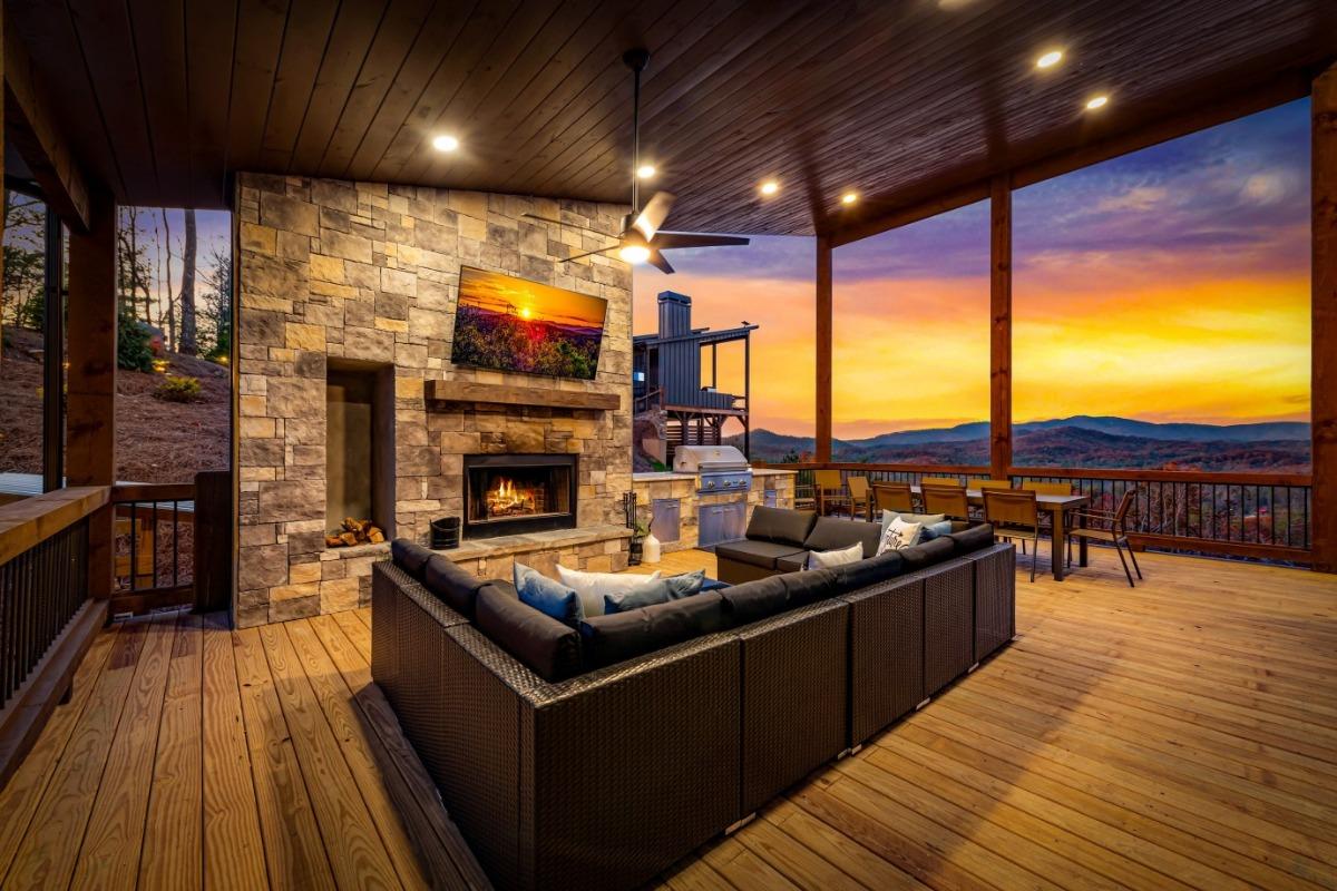 Welcome to Sunset Ridge Chalet, where breathtaking landscapes and cozy comforts combine to create an unforgettable getaway. Nestled amidst the beauty of the Blue Ridge Mountains, this cabin offers the perfect blend of rustic charm and modern amenities. Upon arrival, you'll be greeted by the serene ambiance of the surrounding nature. The cabin boasts two spacious decks that provide stunning panoramic views of the mountains, inviting you to unwind with a glass of wine or soak in the private hot tub while relishing the crisp mountain air. You’ll love relaxing outdoors in front of the fireplace as the sun sets behind the mountain tops. For more outdoor evening fun, head down to the firepit with marshmallows for memorable times, sharing stories, singing songs, and watching the fireflies light up the night.
