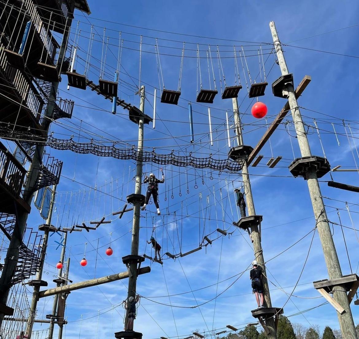 And for ziplines mixed with ropes course challenges visit Blue Ridge Adventure Park! This exciting park features climbing walls, ziplines, suspension bridges, and a variety of fun and challenging obstacles. Three different courses, each with their own level of difficulty, are available for guests ages seven and up. Get ready to push your limits and put your strength and balance to the test at Blue Ridge Adventure Park!