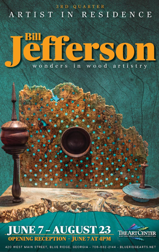 Come on out to the Art Center to admire Bill Jefferson's beautiful, handcrafted wood art works on display in the gallery through August 23rd.