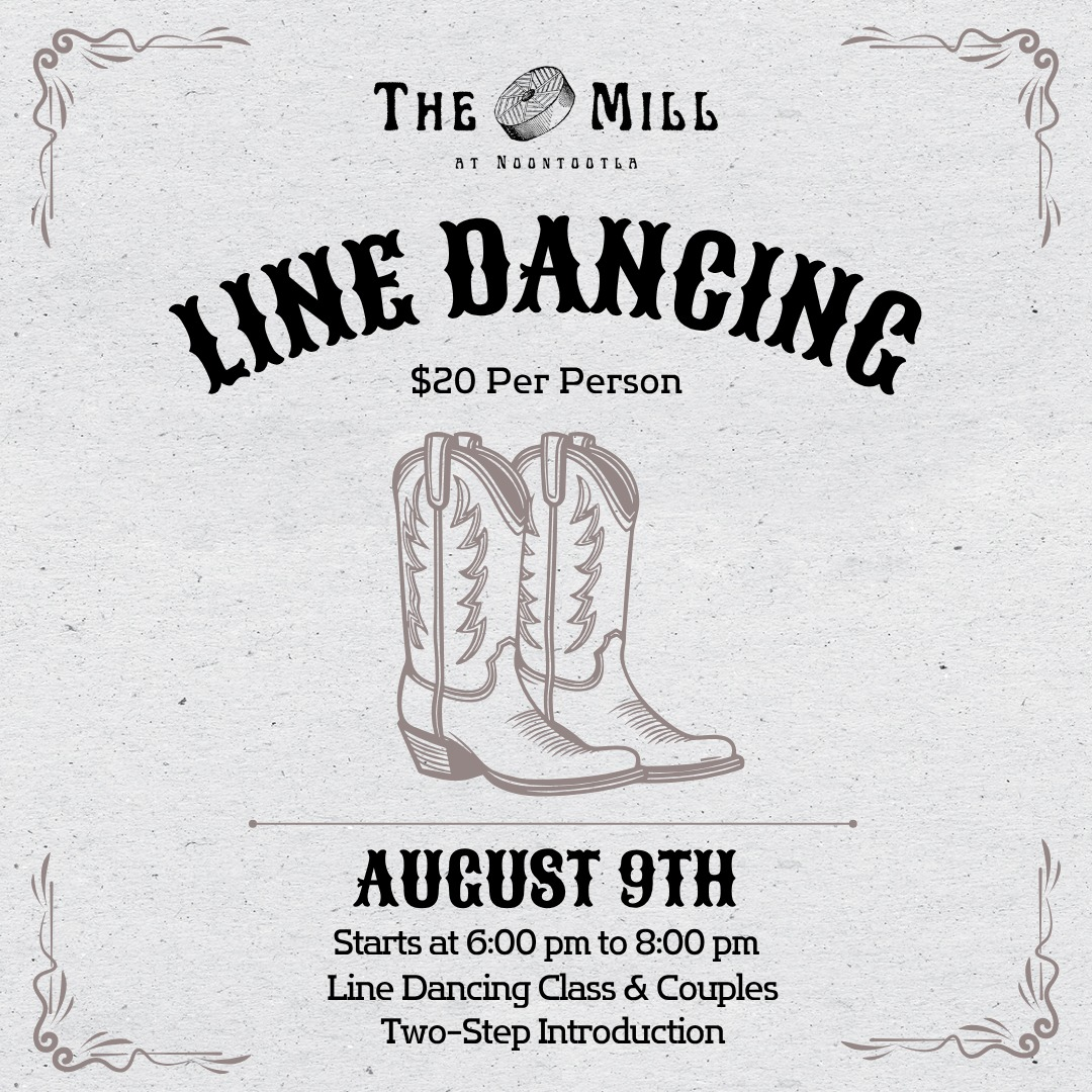 Are you ready to learn how to line dance? Come on out to the Mill at Noontootla for a night of dancing! There will be dancing, snacks, drinks for sale, and lots of fun! Make your reservation in advance or pay at the door, fee is $20 per person.