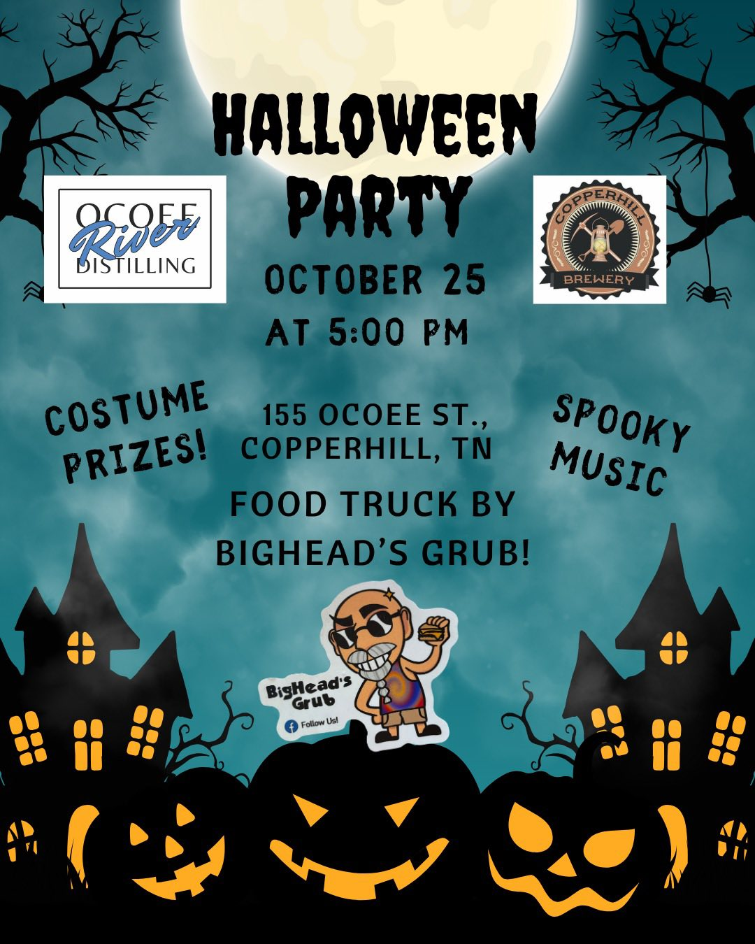Come on out for Copperhill Brewery's Halloween Party on October 25th! Starting at 5pm there will be spooky music, costume prizes, Bighead's Grub Food Truck, and plenty of beer! It's going to be a great night of Halloween fun!