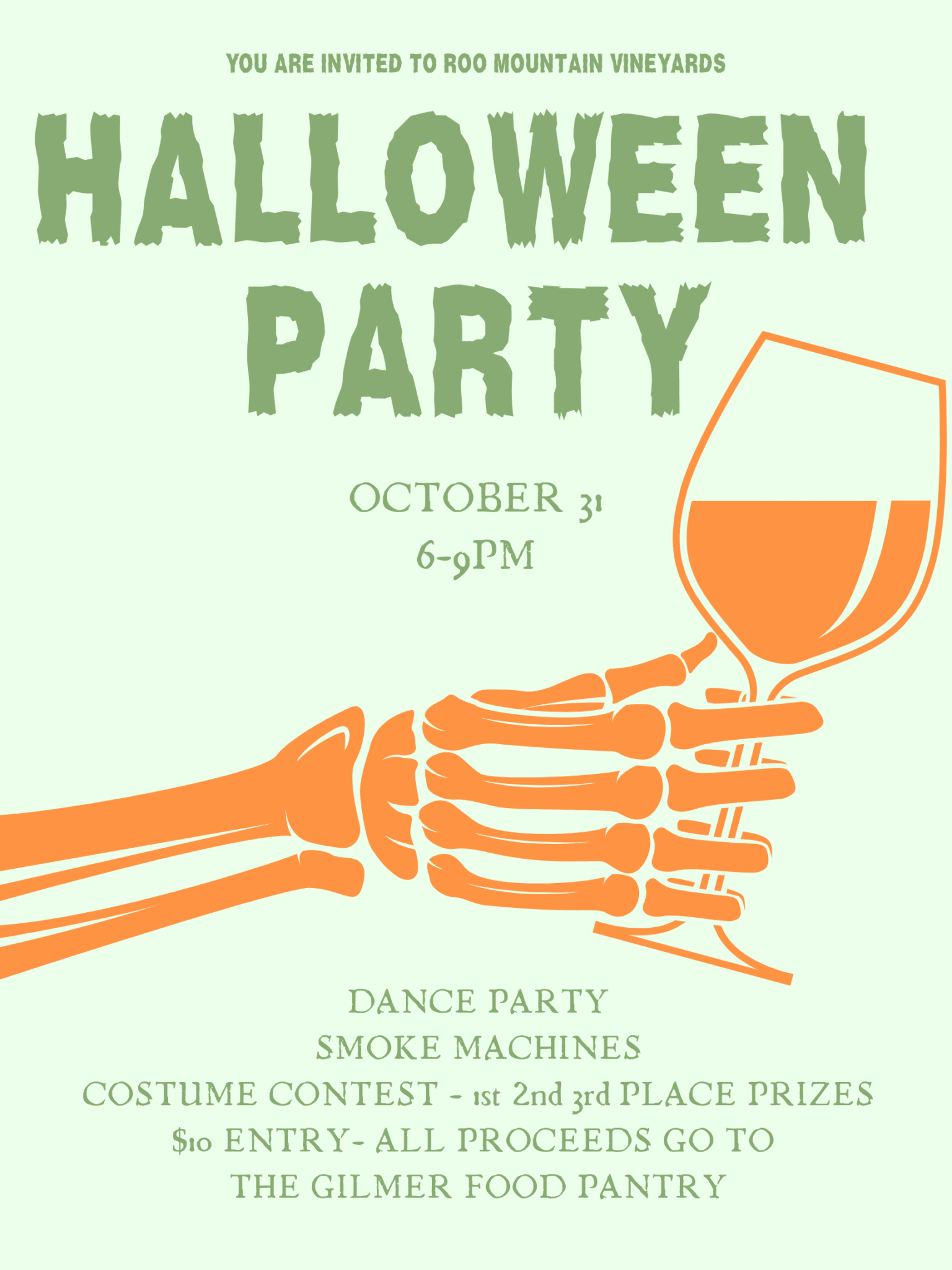 Also happening at Roo Vineyards on Halloween night a Halloween Dance Party! There will be delicious food & drinks, a dance floor and live DJ, and a costume contest. Tickets are $10 a person, with all proceeds benefiting the Gilmer County Food Bank.
